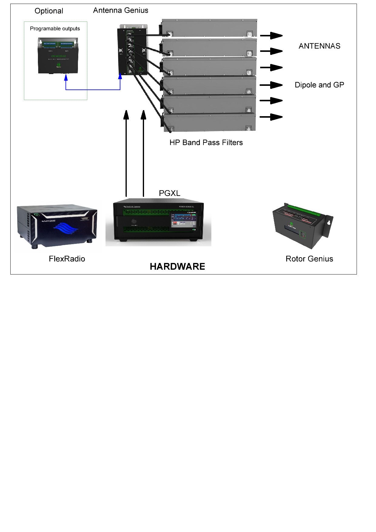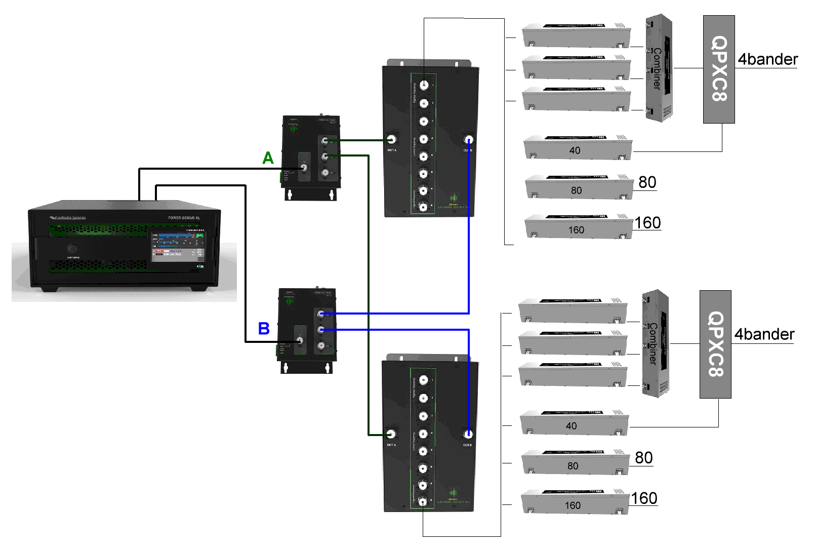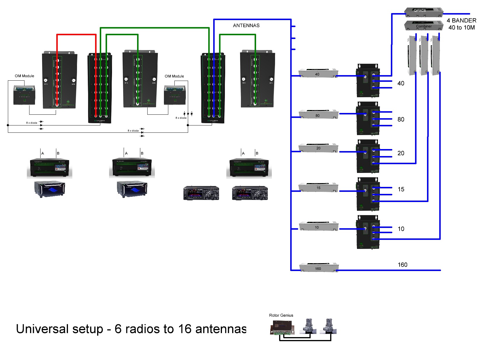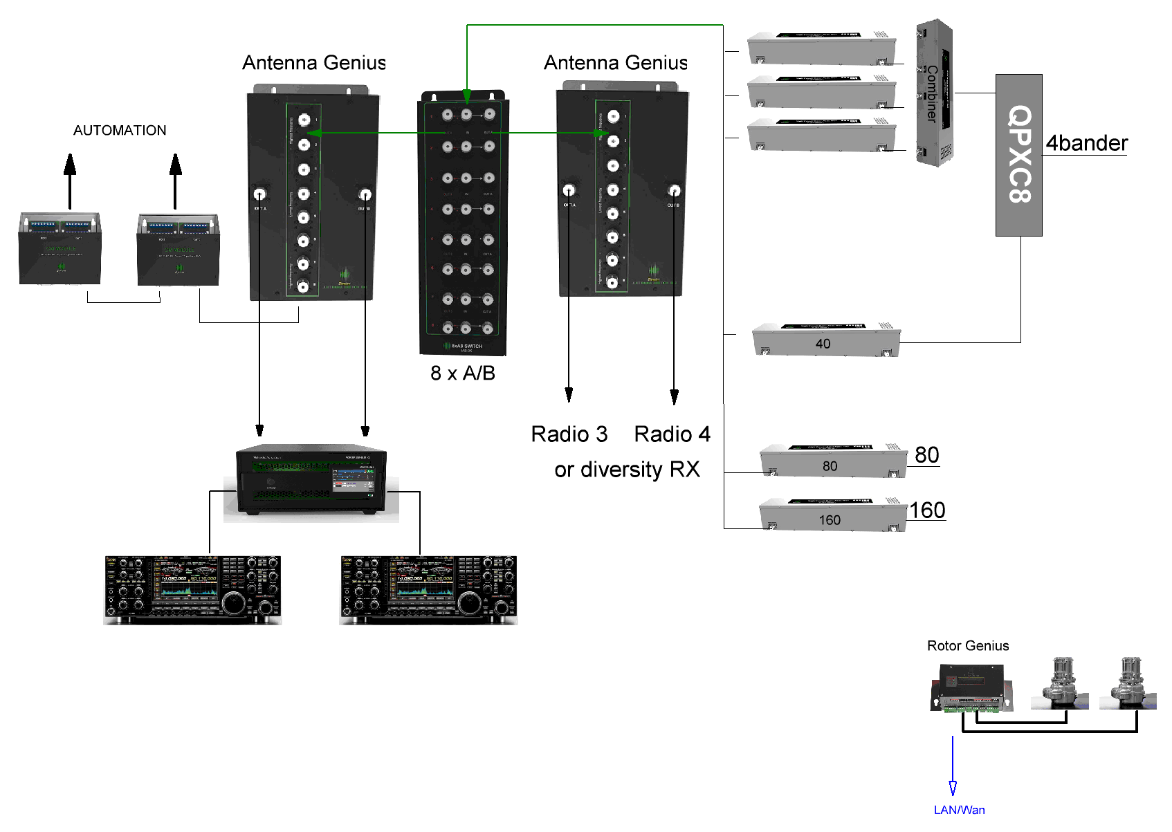 - SO2R with switching, rotor, Power Genius XL and Flex