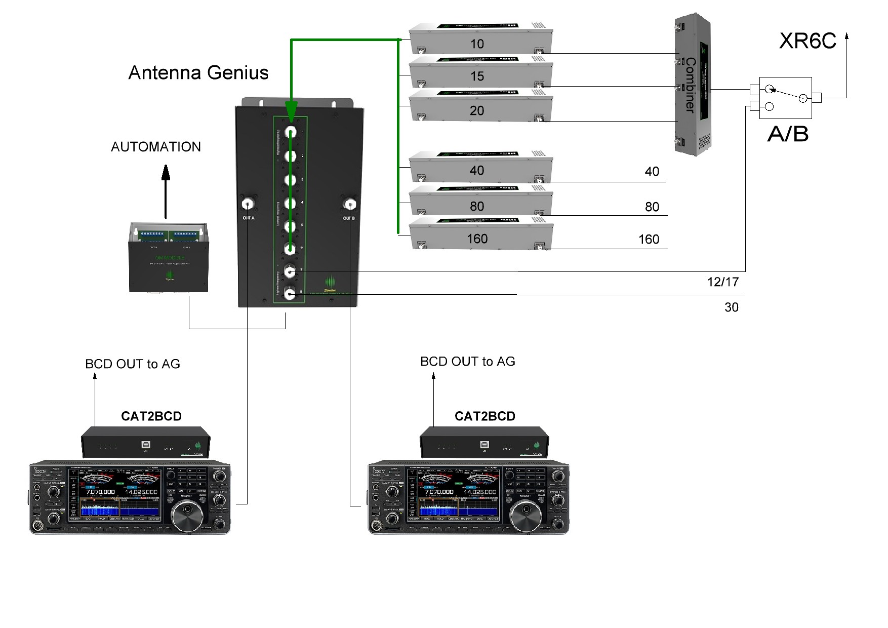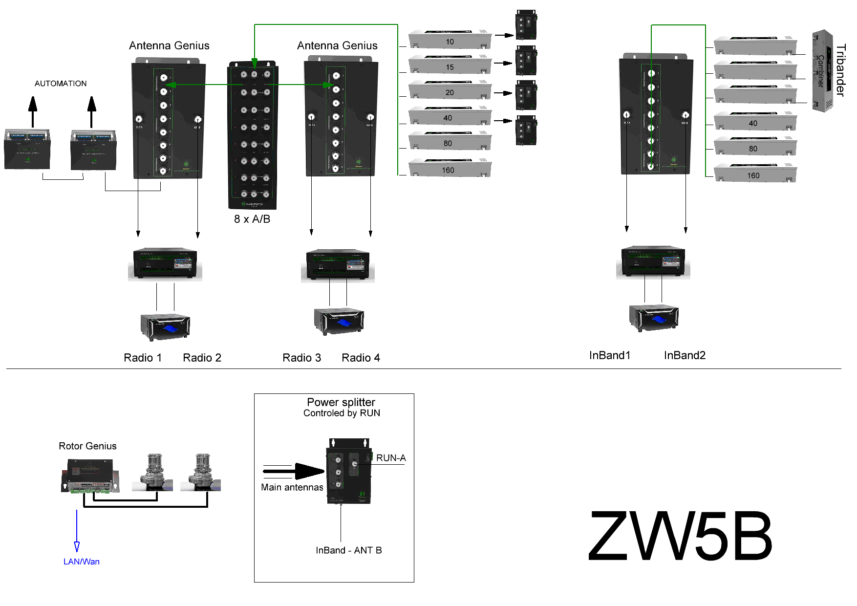 New Genius family devices introduced in 2015 make significant changes, making the platform more powerful. In diagram attached you have SO2R or MS with 2 In Band stations, and 2 MPL radios (One TRCV with 2 RX build in).